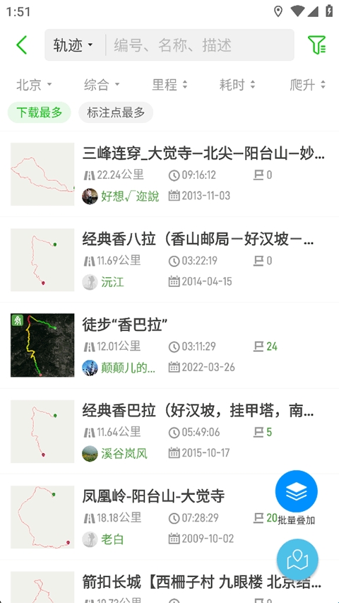 2、海量轨迹:数千万精华轨迹揽括全国户外线路,全部免费下载