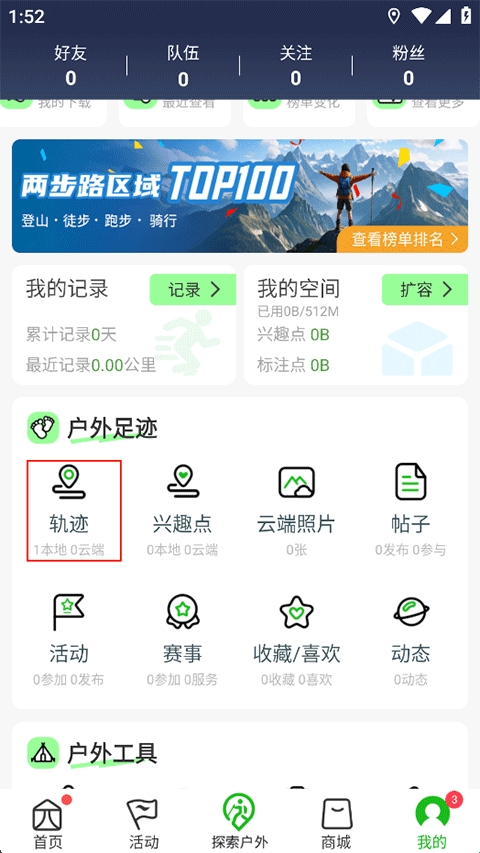 两步路户外助手如何使用轨迹?