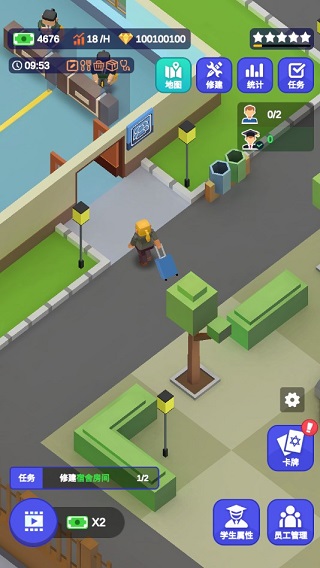 记住,建造物品都可以提高我们的收益,但这并不是主要关心的重点,作为校长要时刻注意学生们的状态,查看“学生属性”,学生有4种不同的需求,满足不了就可能会出现饥饿、生病甚至是退学。