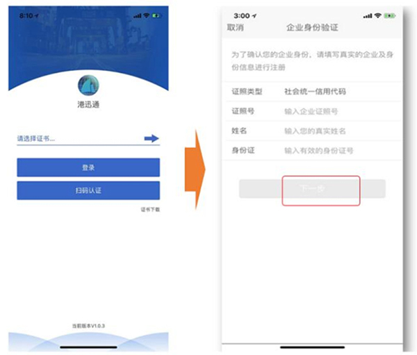 1.下载证书:启动软件后,在首页点击【下载证书】按钮,随后输入证件号、姓名及身份证号,点击【下一步】继续。