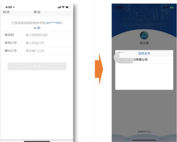 2.验证与设置:接收手机验证码并输入,设定签名口令(此口令将用于后续登录),确认口令无误后,点击激活完成设置。