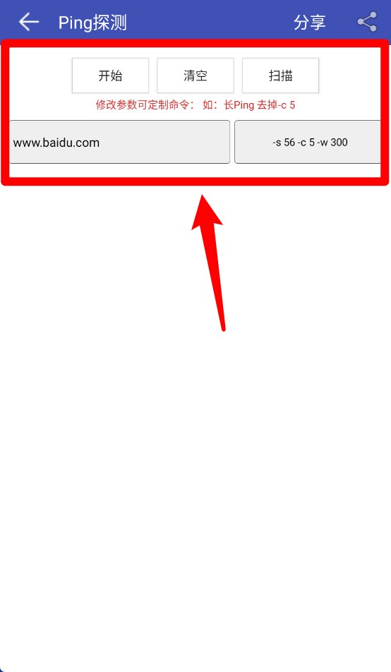 2、在Ping探测页面输入目标地址及参数配置,点击开始即可进行延迟测试并获取网络响应时间。