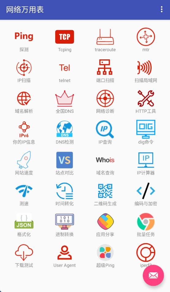 网络万用表是一款集合了多种实用功能的网络检测工具!它包括域名解析、Ping测试、IPv6检测、Traceroute、Telnet和MTR等,能够帮助您迅速准确地定位网络问题,使用起来非常方便。此外,还可以用来查看出口IP地址和本地DNS信息,功能丰富且强大,让您的网络诊断变得更加轻松简单!