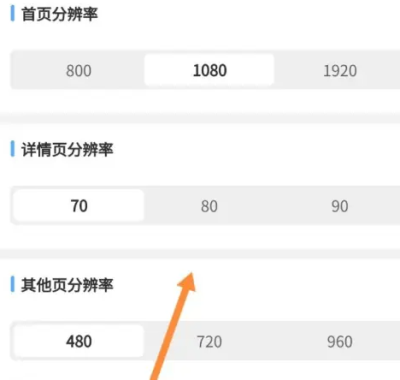 3、如图,可以按照自己的需求设置首页分辨率、详情页分辨率和其他页分辨率。