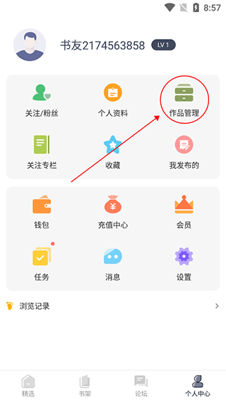 第二步:点击“作品管理”,进入创作页面