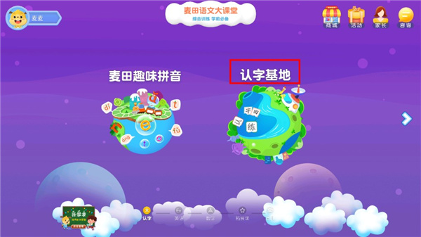 9、我们返回到首页选择认字基地;