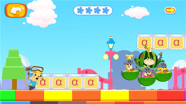 5、进入关卡以后,就是正式开始游戏了,在游戏过程中会遇到单韵母“a”只需要引导孩子点击屏幕跟着一起读就可以了;
