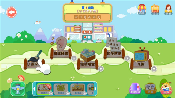 10、进入以后可以看到从认识汉字到辩音辨字,从租词填空再到句子匹配,每一个功能板块都有,更多功能就等大家自行下载探索了。