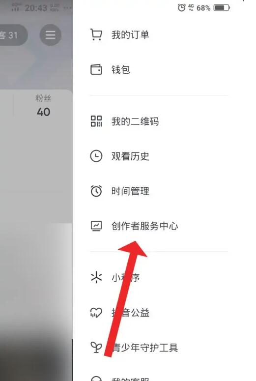打开抖音,点击我的,点击创作者服务中心