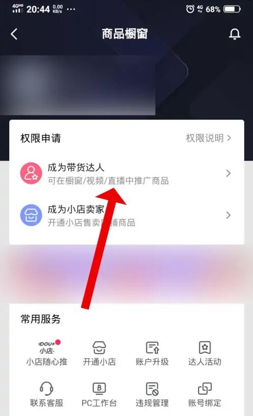 在权限申请中,点击成为带货达人