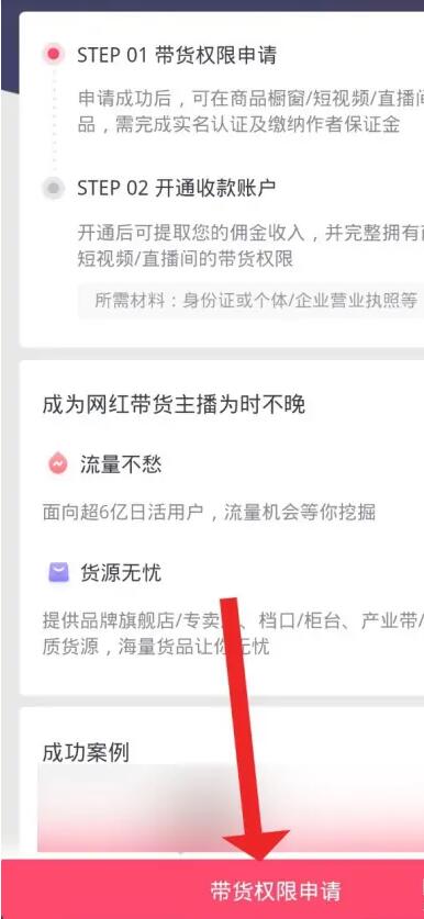 点击带货权限申请