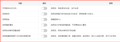 ①可用库存允许为负:开启了则允许商品负库存出库,主要用在采购了存货,但是没有及时入库,为了销售可以正常流转到下一个科目便于安排销售发货的场景。