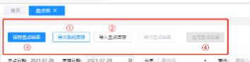 导出系统库存——编辑模板后上传导入盘点库存文件——保存盘点结果——生成盘盈亏单。