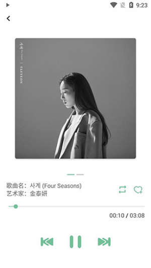 6、而且音乐播放界面也非常简洁,可收藏音乐,并对其进行播放方式的设置;