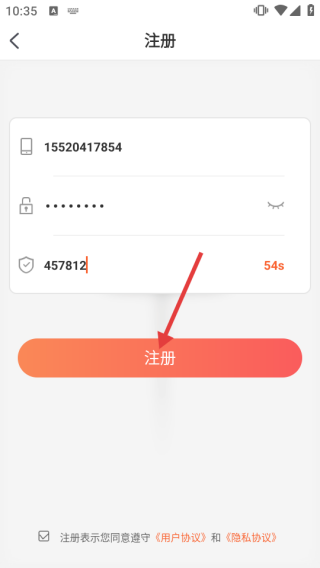 3、输入验证码,点击【注册】按钮,完成账号注册。