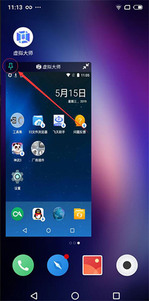 4、点击图钉标志即可对悬浮窗进行锁定,你将不能对悬浮窗进行拖动和缩放,但是可以对虚拟大师内部界面进行操作