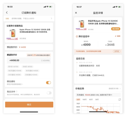 “降价提醒功能”能让我们在第一时间得知商品的降价信息。而价格保护功能则能在第一时间通知用户申请差价退款,这真是一个非常实用的省钱工具啊。