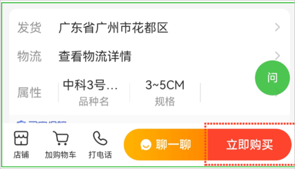 ①在商品页点击“立即购买”