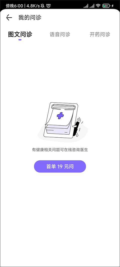 2、在这个界面我们就可以查看我们的问诊记录了,在这因为小编并没有进行过问诊所以才没有显示。