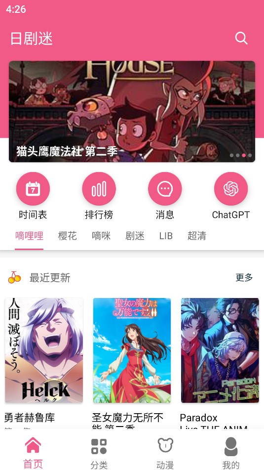 日剧迷是一款受到很多动漫爱好者欢迎的动漫追番软件,国内外所有的热门动漫资源,都能在这里面轻松找到,让你尽情沉浸在精彩的动漫世界中。拥有热血、偶像、职场、异世界、穿越等多种类型的动漫作品,轻松满足每个漫迷的观看需求。软件还带来了高速下载缓存功能,随时都能在手机上追更本季度喜欢的动漫作品。根据动漫迷的搜索与播放喜好,每天都会智能推荐几部精彩的动漫作品,并且实时更新最新的动漫资源,让观众们再也不会找不到番看。