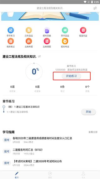 5、如果需要重新选择课程,只需在首页上选定学习目标,然后点击【开始练习】即可。