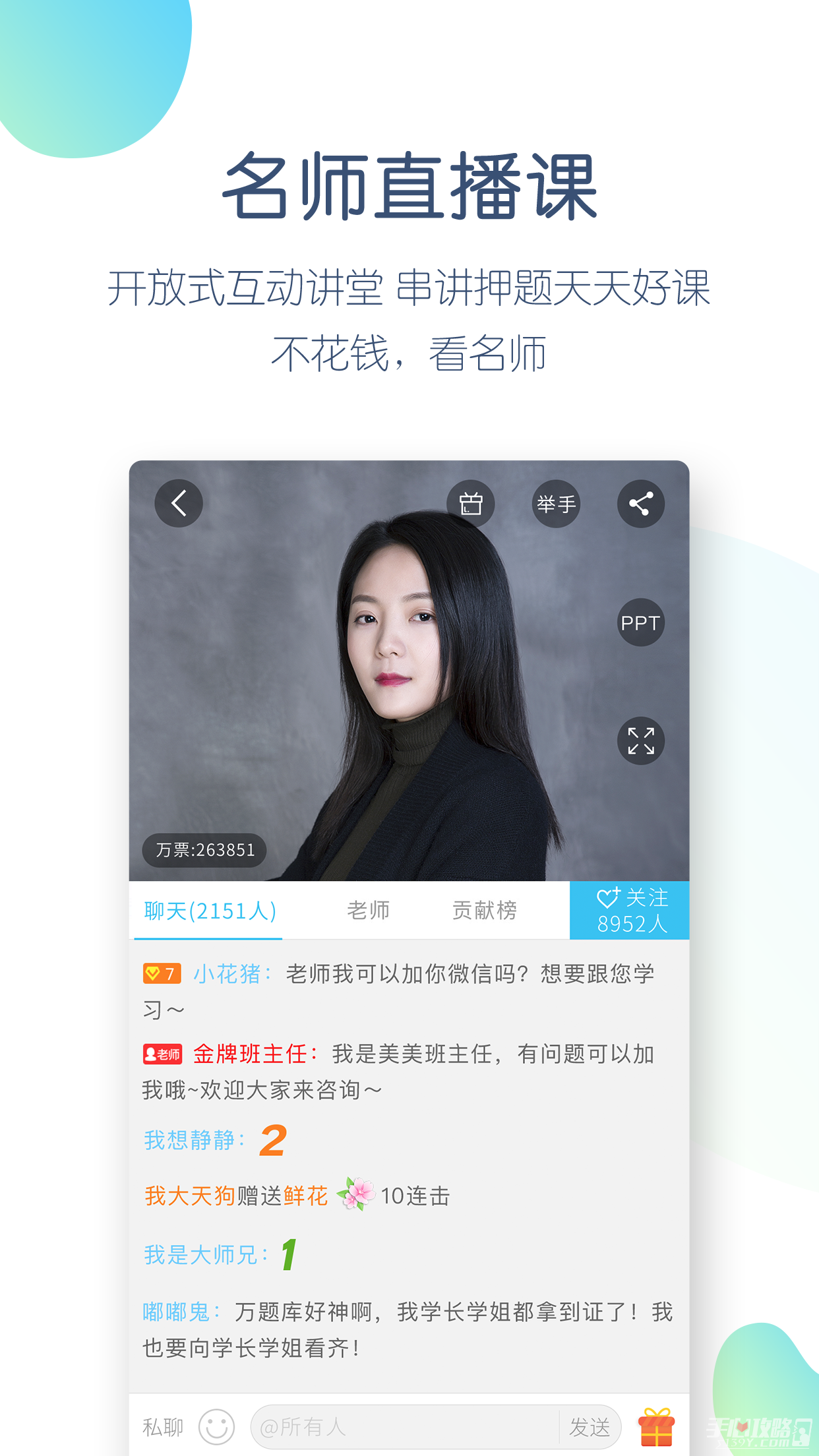 “免费直 播课”由万题库大神讲师“7X12小时轮循”在线直 播,完虐“昂贵、低质”的传统线下机构和欺诈性培训班