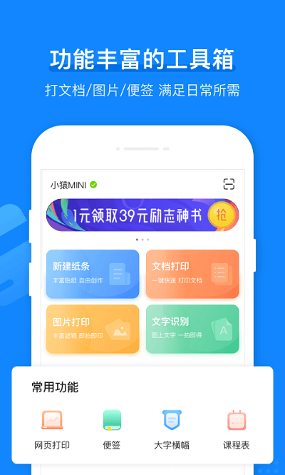 ·支持打印图片、课程表、便签列表、图文结合的纸条、小猿定制表情、手绘涂鸦、大字横幅等多种打印功能