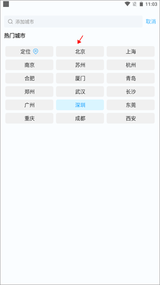 3你可以从下面的热门城市中直接选择一个,或者使用搜索功能来挑选,确定后点击所选城市。