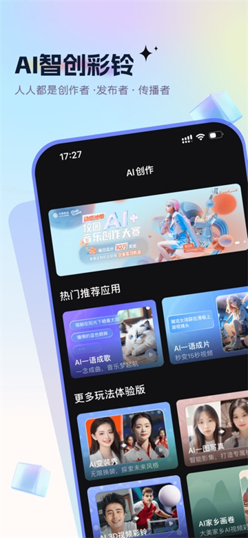 咪咕音乐彩铃版app是一款专为音乐爱好者们打造的音乐播放器平台,平台中整理了赛事、音乐、彩铃、短视频等多种类型的资源,全部都可以免费的选择进行播放,沉浸在宝藏播放器的音频播放当中。经过更新后还全新增加了音乐卡点、AI创作、个性化名片、选人标签等多种类型的服务,去通过制作的方式进行打造自己的音频播放体验。