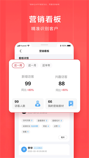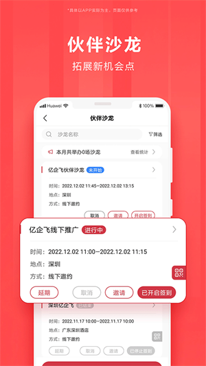 华为亿企飞聚合了热销产品、场景化方案、营销资讯等丰富的内容,以及配送助手、电子名片等便携服务,为分销商们提供了极大的便利。