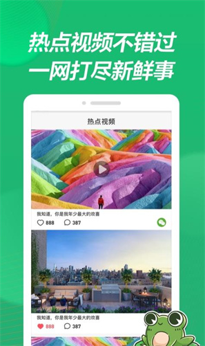 1、影蛙视频是一个很多人非常喜欢的短视频在线分享平台,直接点击观看可以感受到更多的惊喜。
