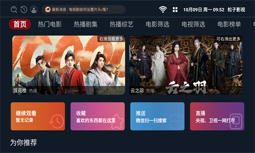 松子影视是在电视上使用的一款软件,它能够观看各种类型的影视剧并且还可以同步观看卫视直播哦,通过左侧栏可以查看所有的卫视情况,对于一些感兴趣的影视用户通过点击就可以进行观看啦,软件内也没有任何的广告,用户可以放心追剧哦!