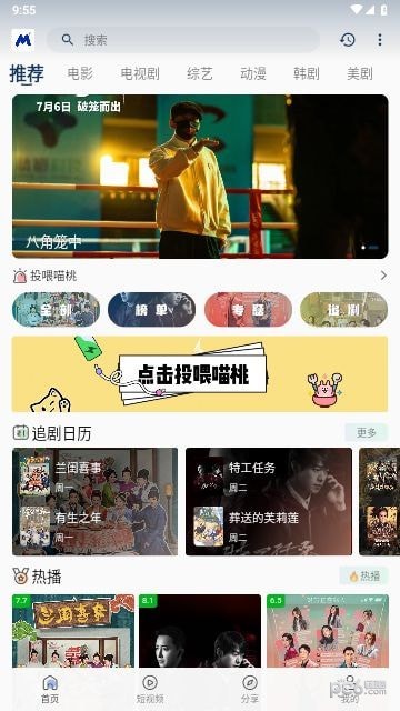 喵桃视频APP是一款拥有丰富影视资源的追剧平台,包含了各种类型的电视剧、电影、综艺和动漫等节目。无论你对哪种类型的影视剧有兴趣,都能在这里面中找到,而且使用这款APP观看影视剧不需要会员,也没有广告弹窗的干扰,给用户提供一个优质的观影环境。这个软件还支持离线缓存功能,让你即使在没有网络的情况下也能轻松追剧,再也不用担心剧荒的问题。