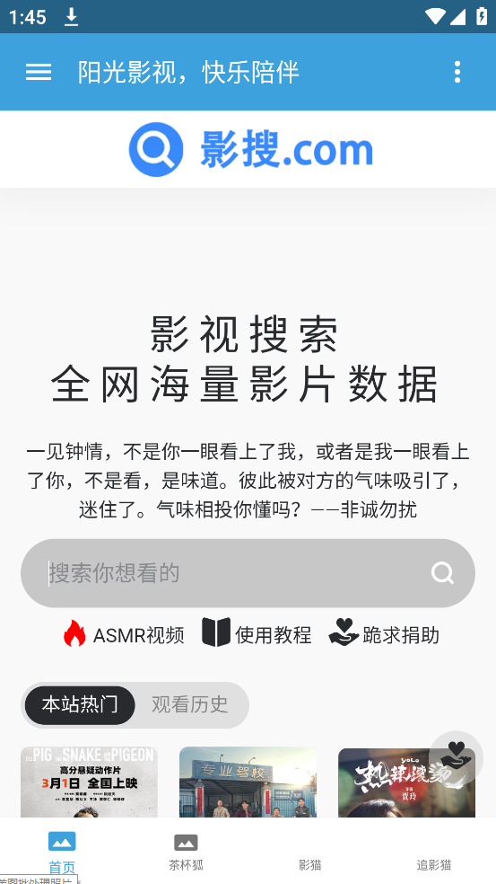 阳光影视是汇聚大量免费热门视频的影视平台,提供极致播放体验和每日更新的各类内容,无需漫长的等待。可以在该平台上观看热门综艺、优秀剧集等视频内容,并且还可以实时转播央视、卫视等电视节目,海量的剧集选择能轻松满足剧迷们的需求。