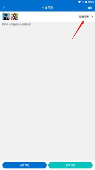 5、使用对话生成器截图神器最常用的就是对话截图,方法很简单,点击小微单聊,可以看到两个微信,点击设置资料可以为其设置信息;