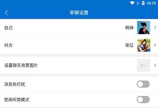 6、可以设置自己和对方的头像,还可以设置聊天背景图片;