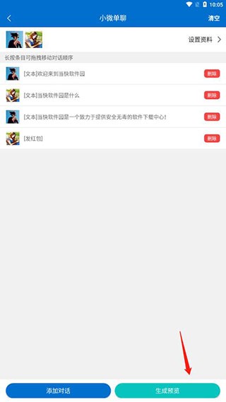 10、多重复此步骤就可以得到一个完成的对话内容,点击生成预览;