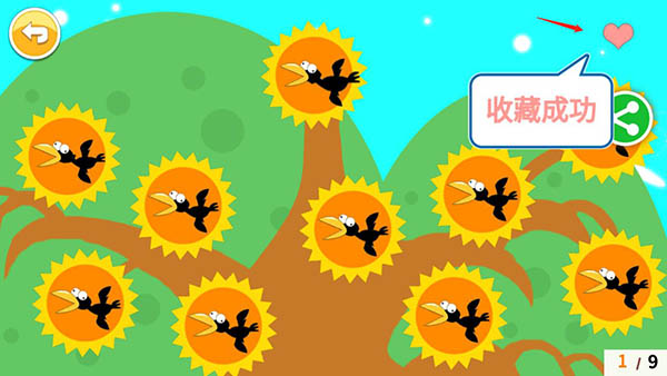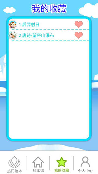 1在阅读绘本或唐诗宋词时,右上角会显示一个爱心图标,点击该图标即可完成收藏。