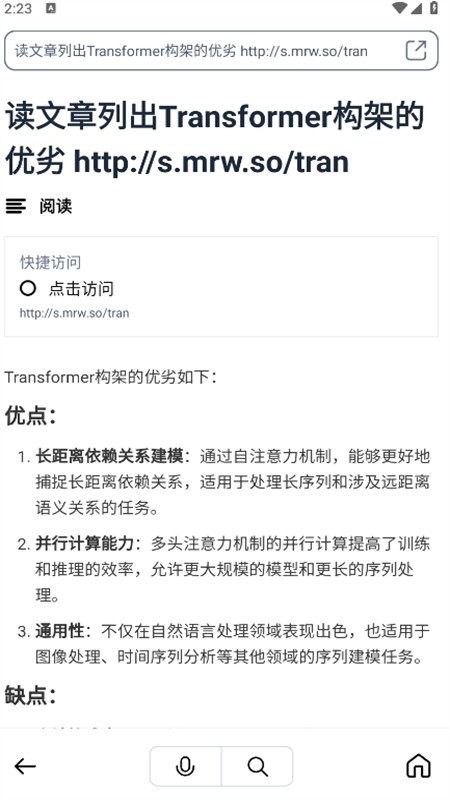 同时,软件采用先进的分布式计算架构和优化算法技术,会根据用户的搜索历史和兴趣偏好进行个性化推荐,以及会根据问题搜集相关的网页进行整理、总结并归纳,提供精准、高效的搜索体验。