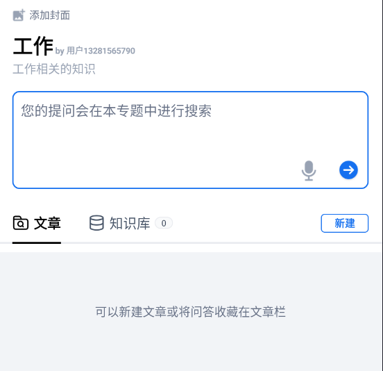用户可以新建文章或将问答收藏在文章栏里。