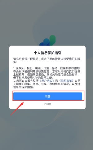 1、点击红色框内的同意按钮,确认个人信息保护指南。