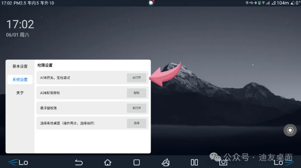 检查悬浮窗权限是否打开。设置为系统桌面(如下图)