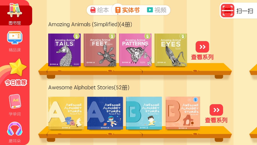 海量精美绘本、实体书以及视频任你使用学习