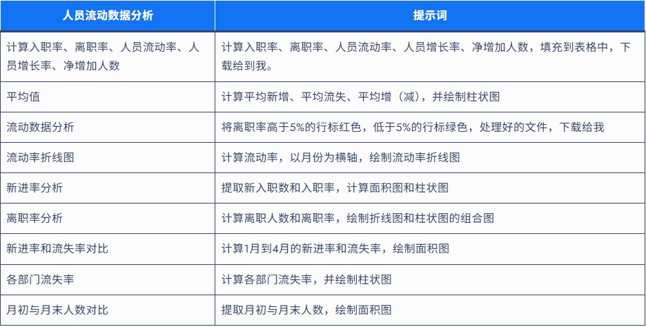 示例:“生成员工流动趋势折线图,展示入职/离职人数对比”