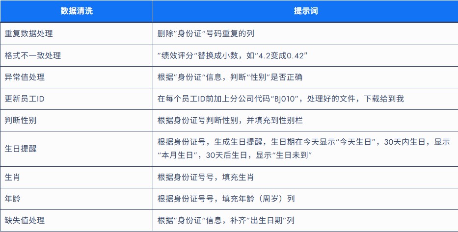 其他需求:重复数据处理、格式修正、异常值清理等(直接输入自然语言指令)