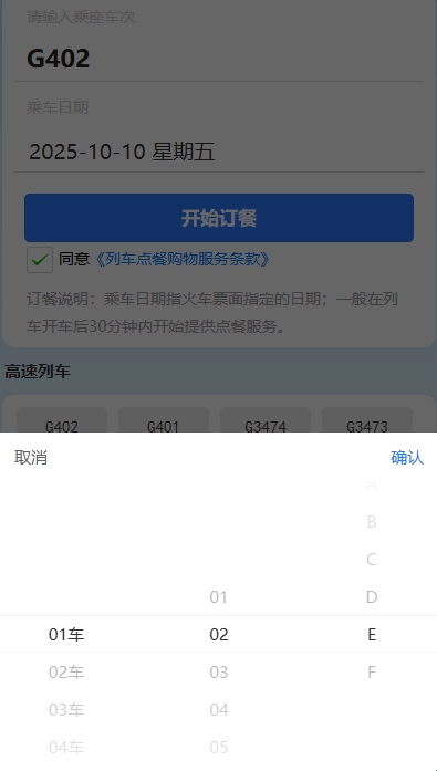 1、打开软件,点击列车点餐