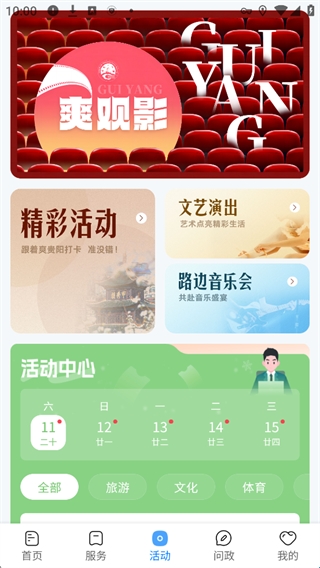 3、在“活动”板块,您可以查看贵阳及贵州地区的精彩活动,通过点击活动中心,您还可以根据日期筛选,轻松查找并参与感兴趣的活动。