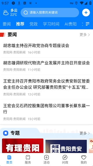 1、打开贵阳新闻App,在首页可以浏览关于贵州贵阳市的各种新闻资讯,也可以在搜索栏搜索你感兴趣的内容。