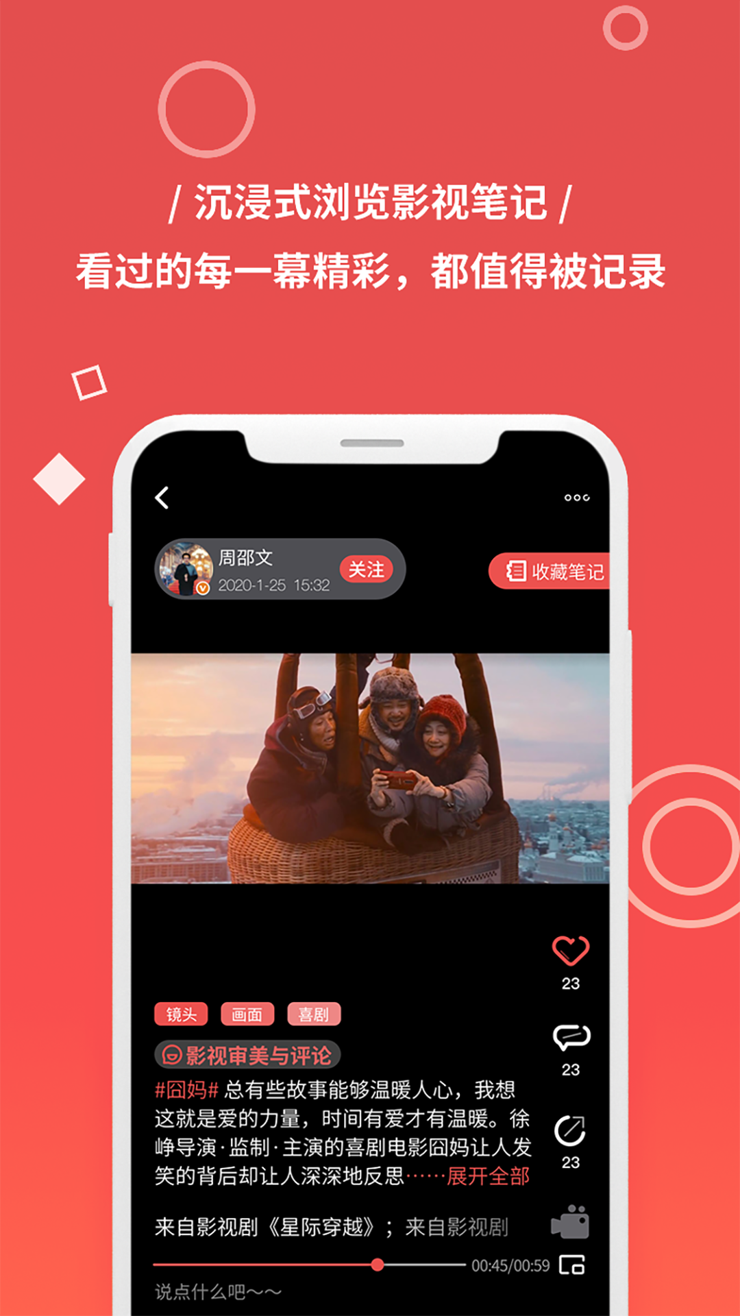 2、它还可以帮助人们记录下一些短视频,用心的写下自己对影片的感受。