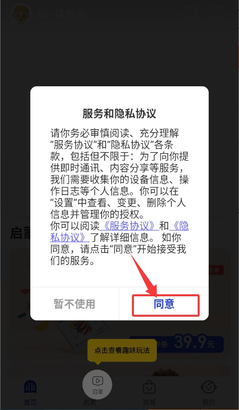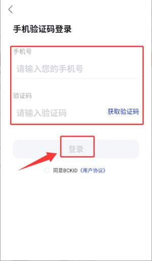 1.启动应用:打开BCKID App,点击服务协议窗口的“同意”进入验证登录页。